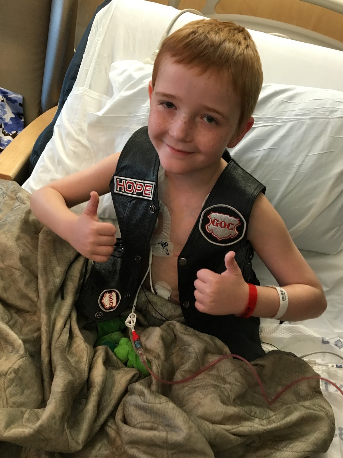 The Guardians of the Children Von Ormy took Rowan into their family, as a Lil' Guardian, over a year ago. He chose the name "Hope" as his road name, and was so proud to wear his leather vest. He wore it at their different charity events, and even during his first transplant.